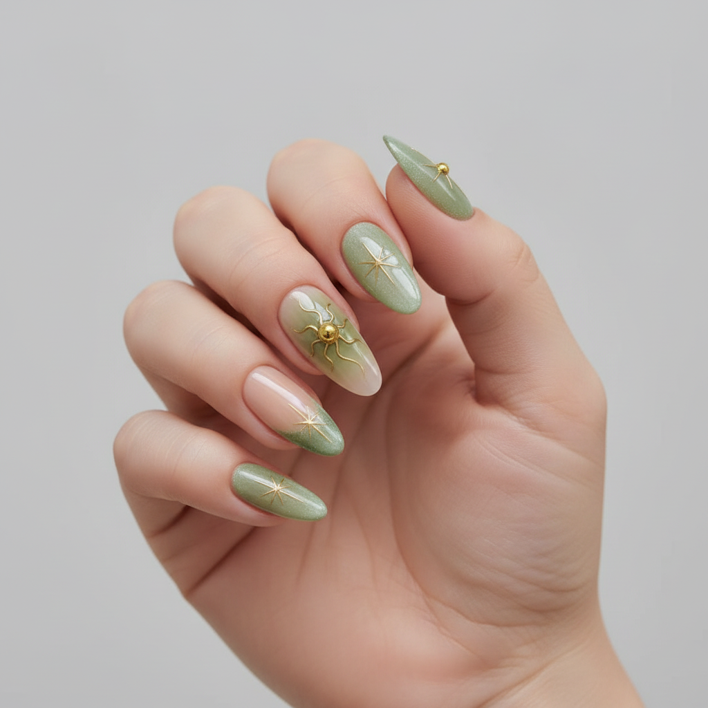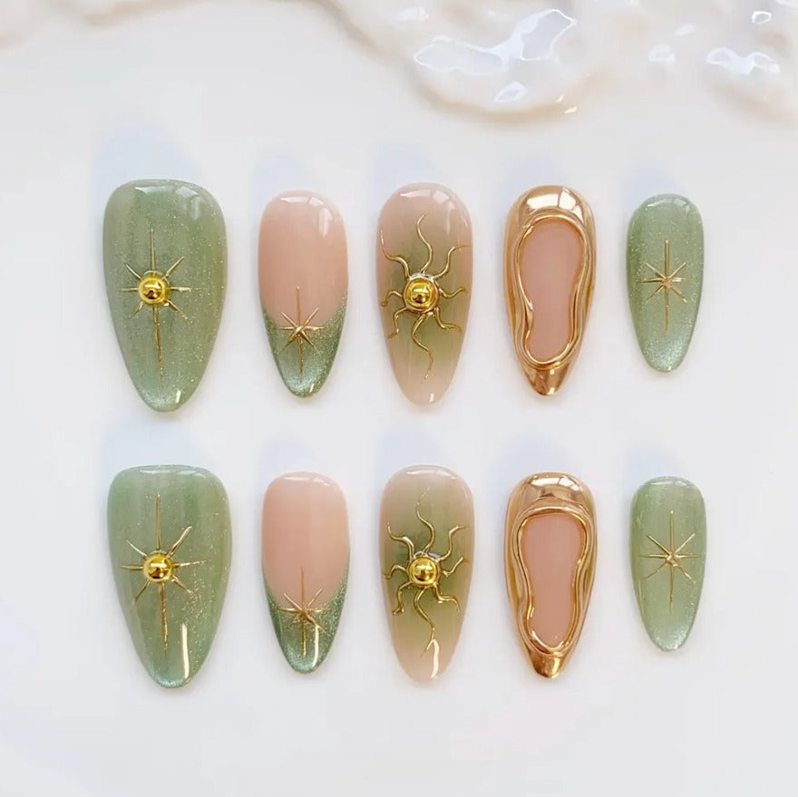 Nailuvia-AL005 Almond "Sage Starlight" Press-On Nails