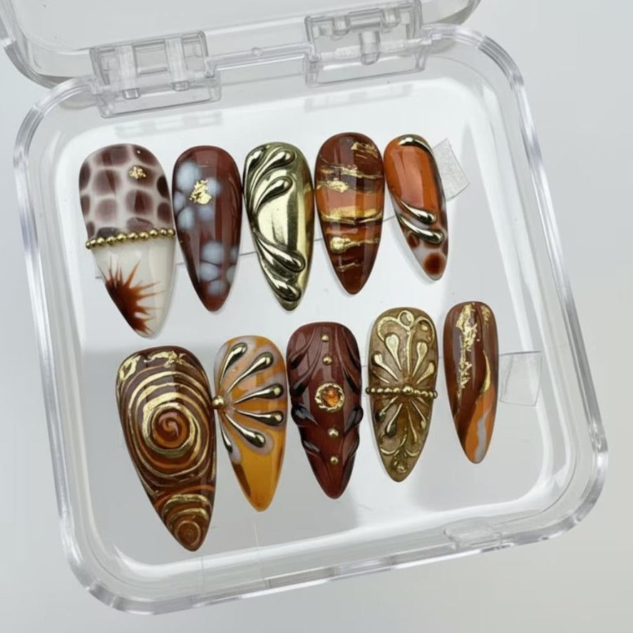 ✨ Almond "Desert Treasures" Press-On Nails ✨ Unearth the opulence of a sun-baked desert oasis with our Almond "Desert Treasures"...