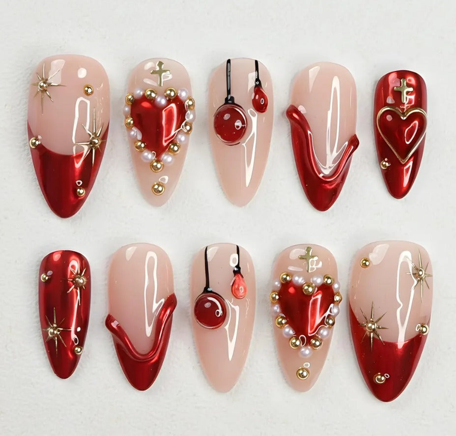 Nailuvia-AL022 Almond "Ruby Romance" Press-On Nails