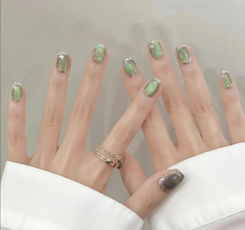 Nailuvia-CA011 Cat Eye "Jade Crystal" Press-On Nails