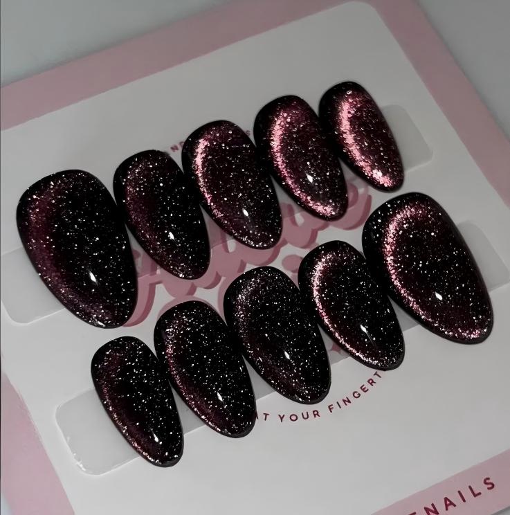 ✨ Cat Eye "Burgundy Stardust" Press-On Nails ✨ Immerse yourself in the rich, mysterious allure of a winter night sky...