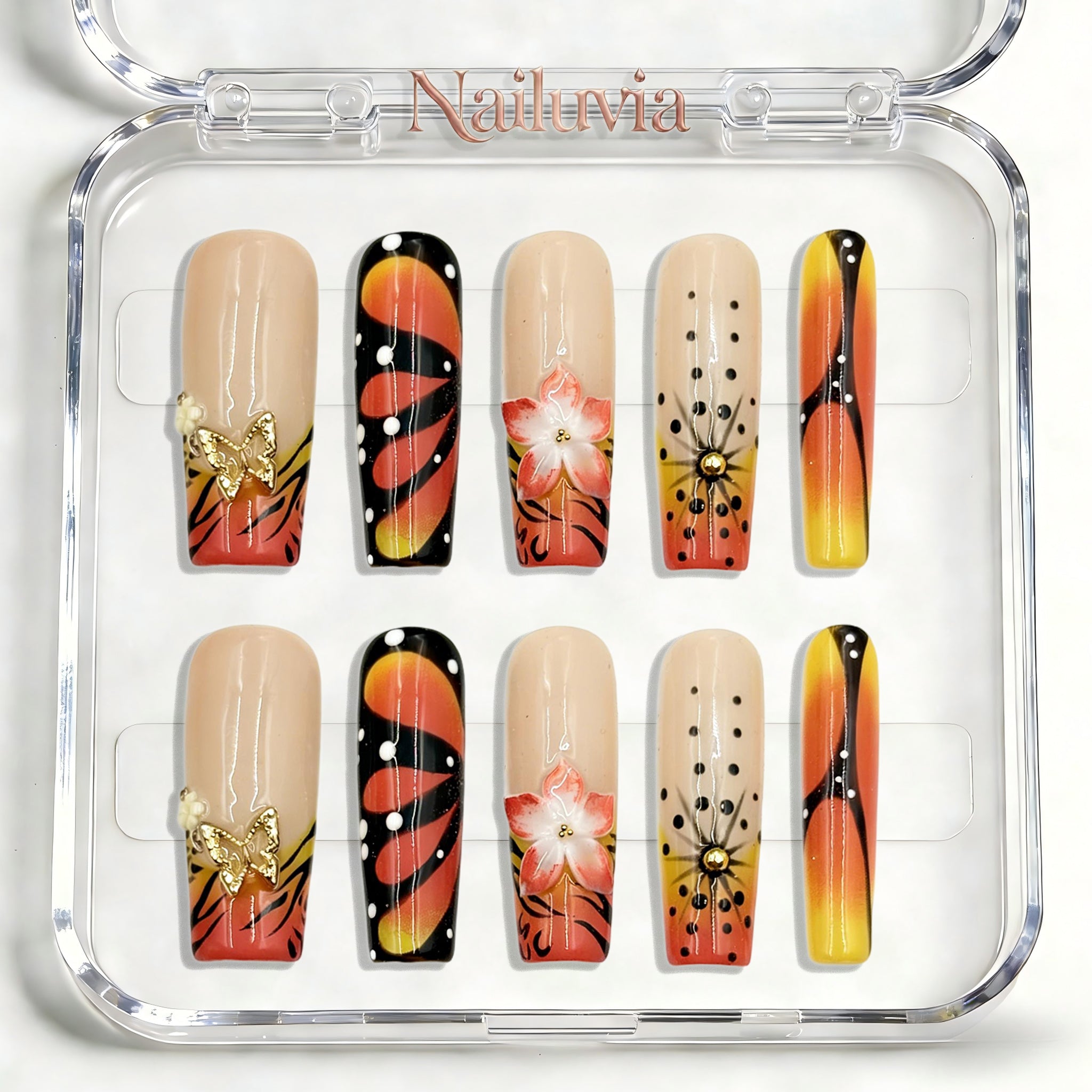 ✨ Midium-Square "Autumn Sunset Glow" Press-On Nails ✨ Capture the fiery, warm hues of a fall evening with our Midium-Square...