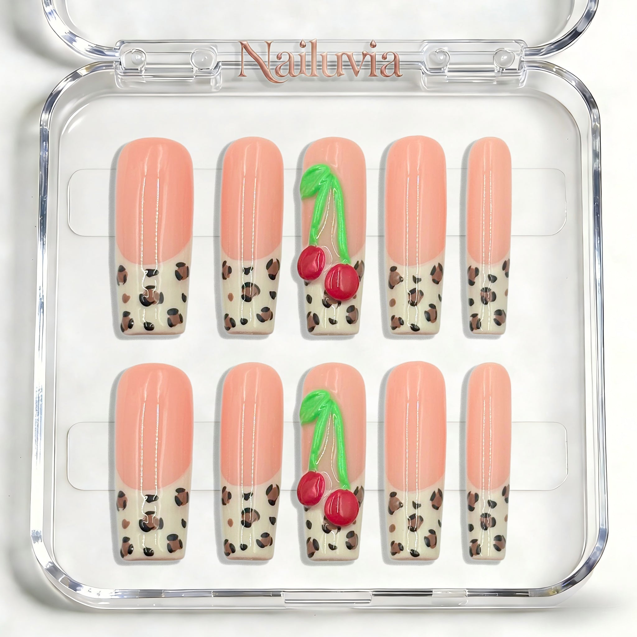 Nailuvia-D096 Midium-Square "Peach Cherry Leopard" Press-On Nails