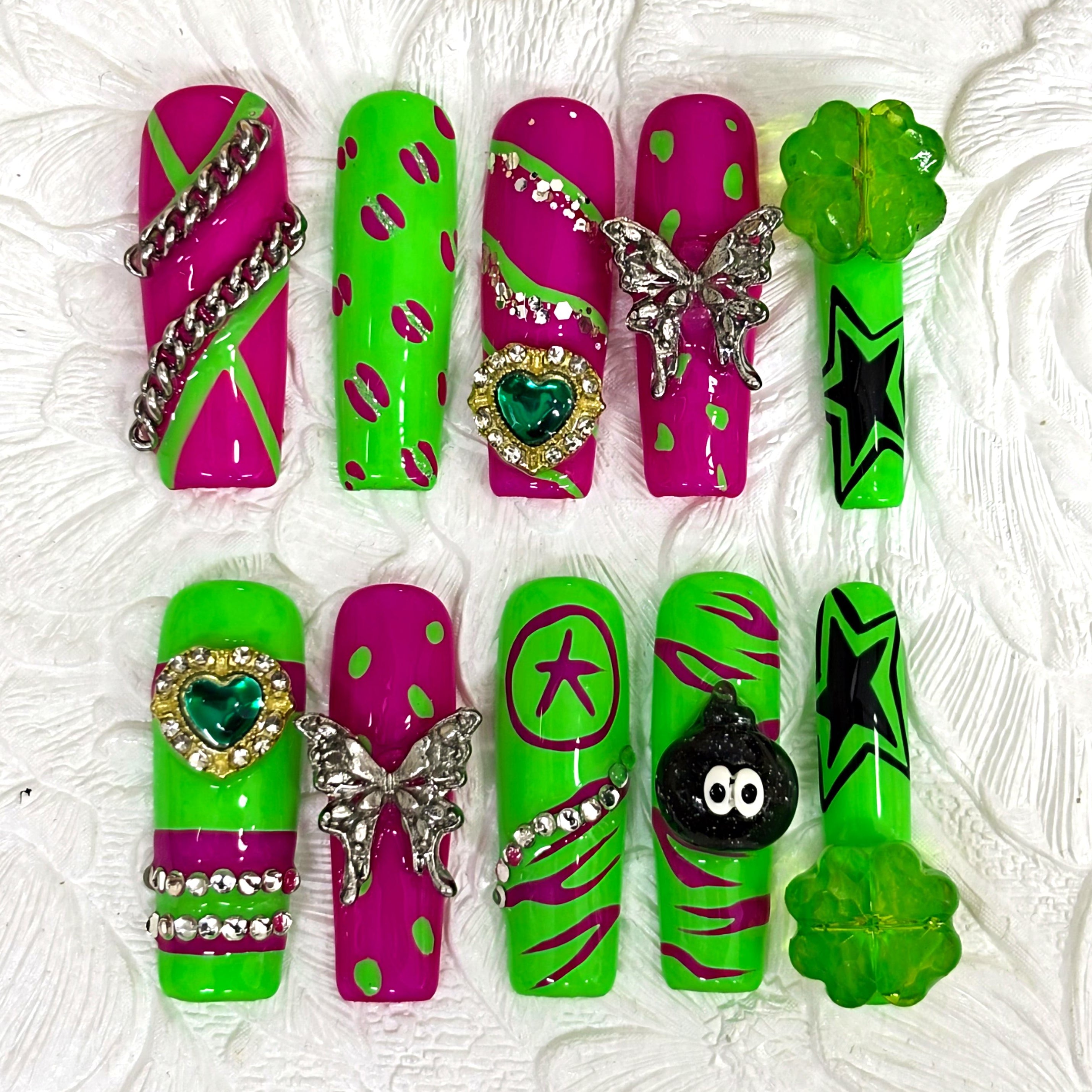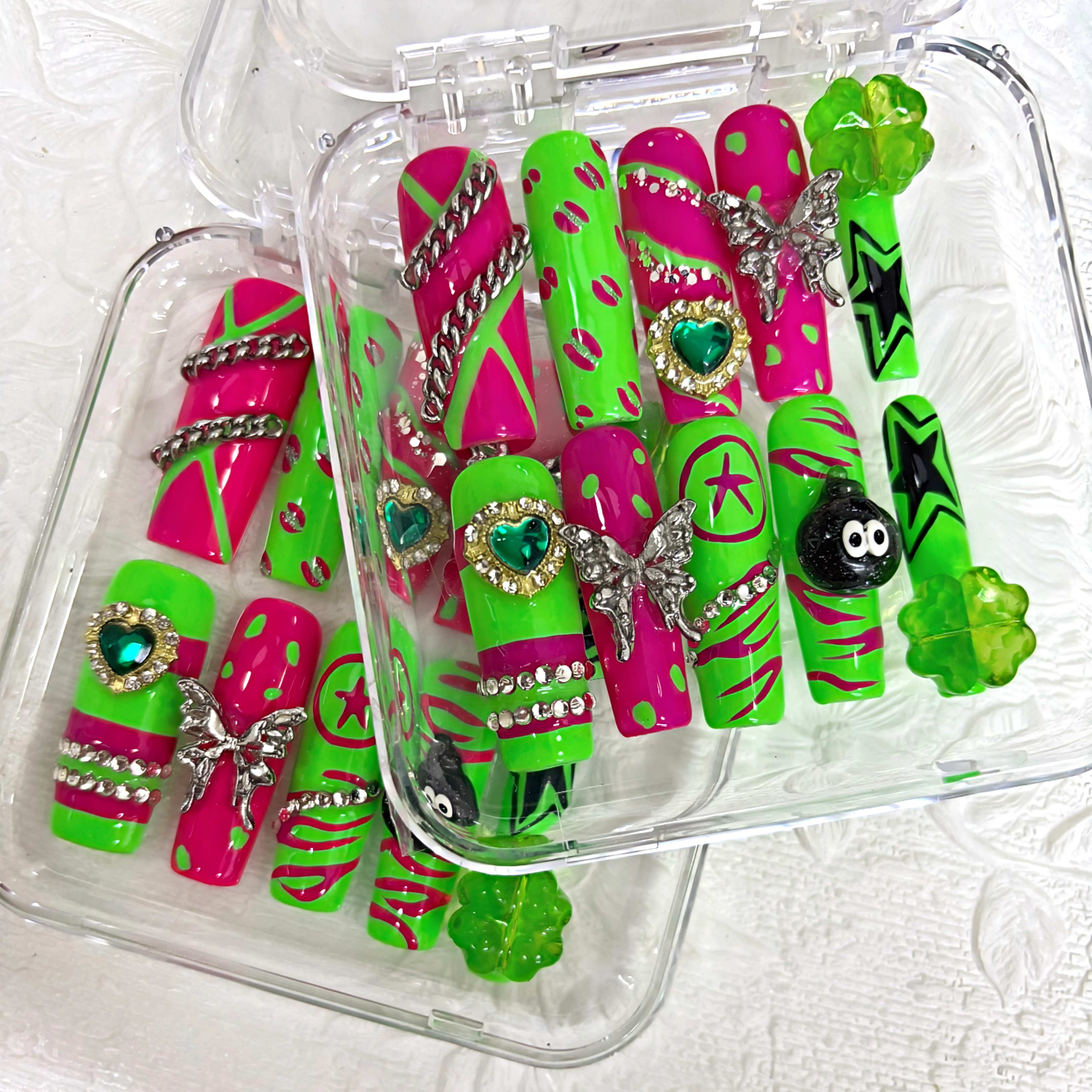 ✨ Midium-Square "Cyber Rave" Press-On Nails ✨ Unleash your bold, rebellious energy with our Midium-Square "Cyber Rave" Press-On Nails—a high-octane,...