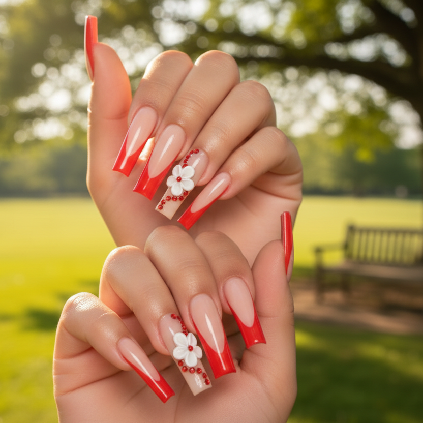 ✨ French "Red Rose" Press-On Nails ✨ Add a bold, romantic twist to your classic French manicure with our French...